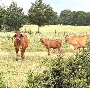 Located in Rains County, Texas, we specialize in custom hay bailing, registered Red Brahman sales, and livestock artificial insemination services.